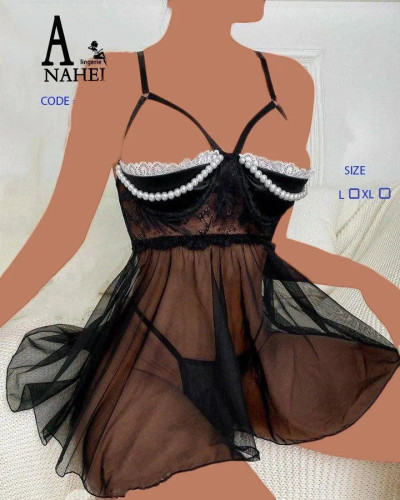 لباس خواب توری مرواریدی فنردار Anahel کد 7072
