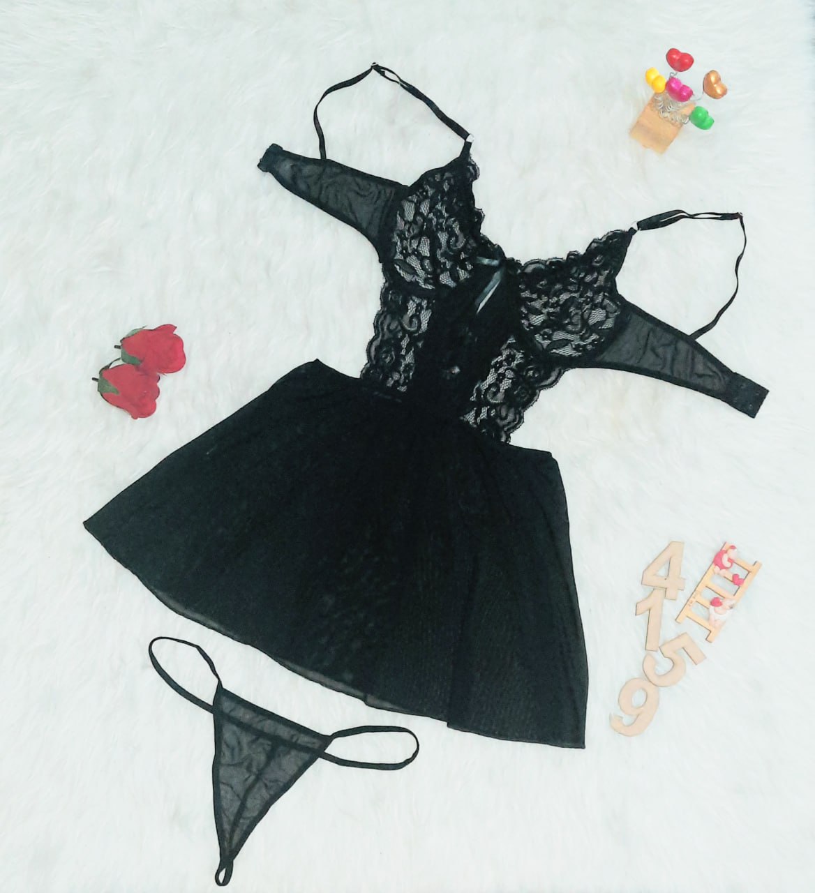 لباس خواب توری کوتاه فنردار Lavin کد 4159