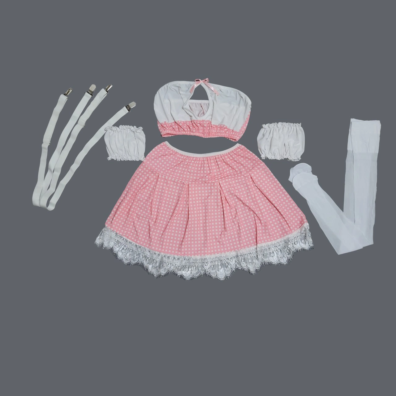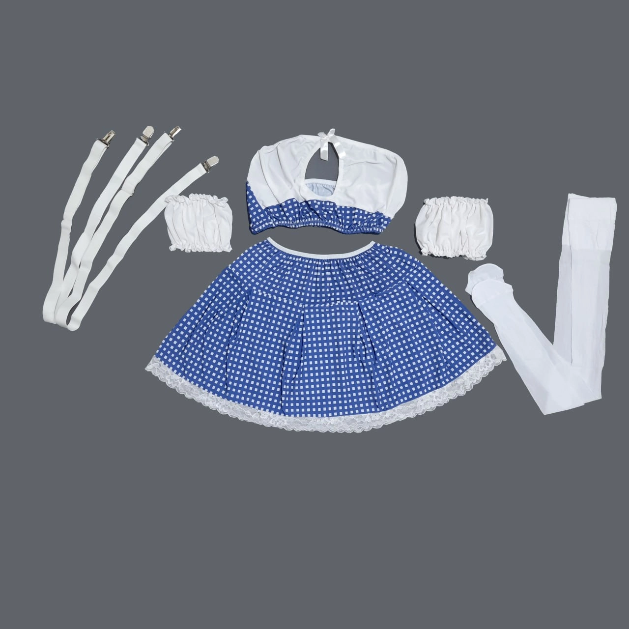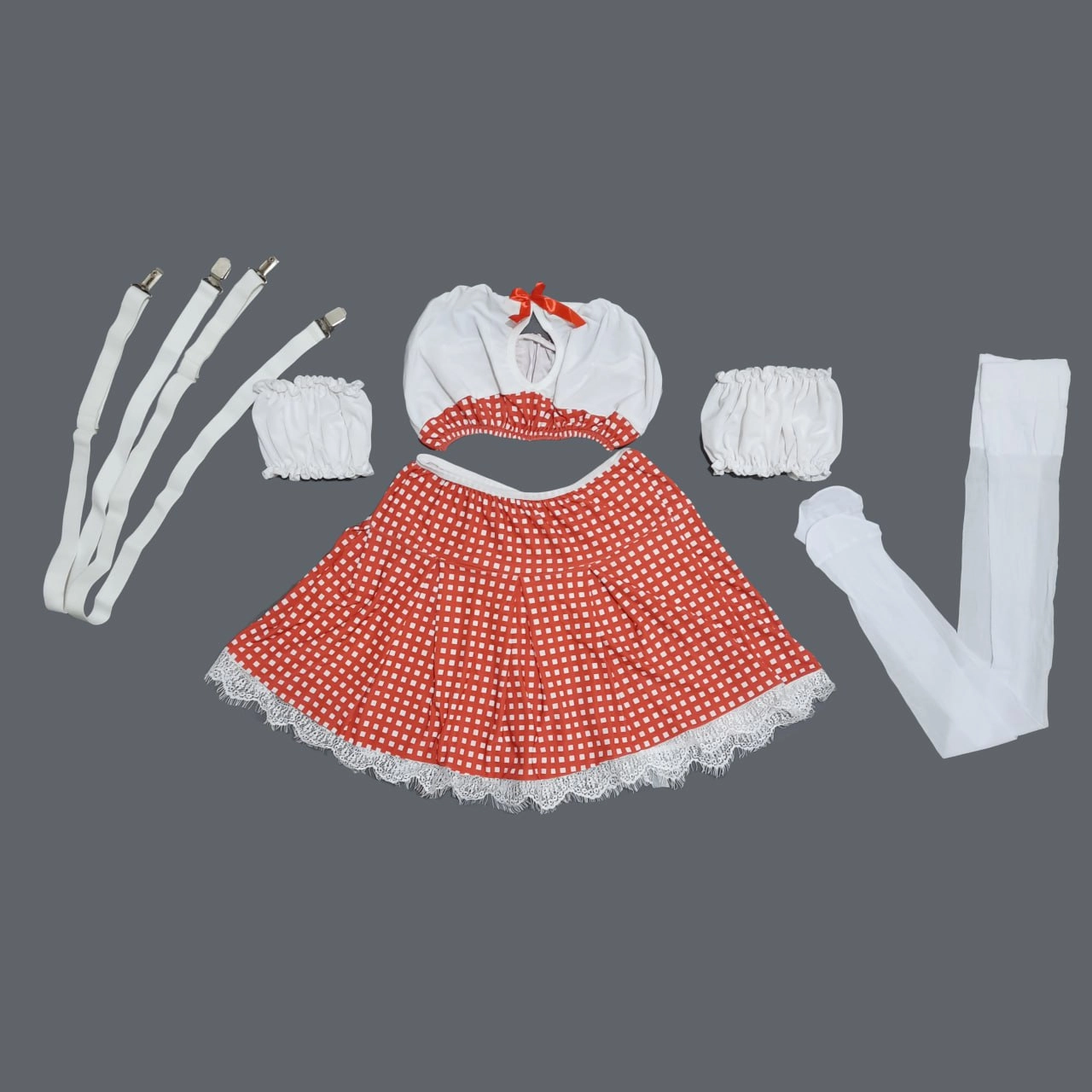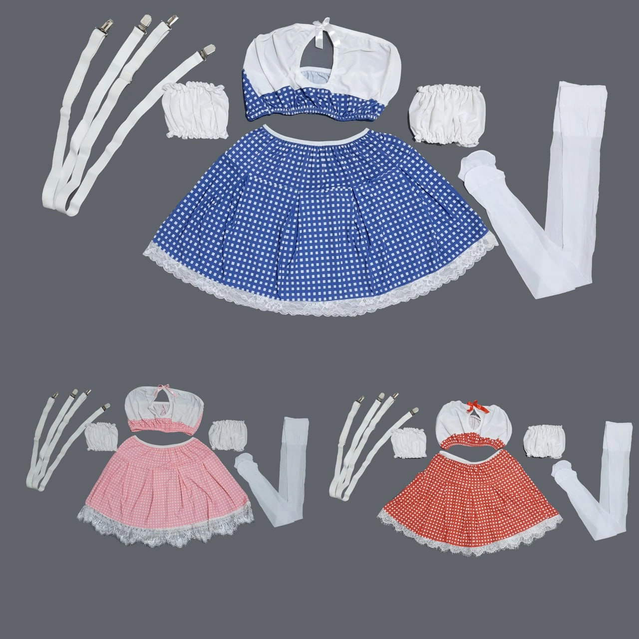 یک ست اغواگرانه با طراحی خاص و پارچه شطرنجی، در سه رنگ شیک و منحصربهفرد! این کاستوم فانتزی در سه ترکیب رنگی آبی-سفید، قرمز-سفید و صورتی-سفید عرضه میشود تا هر کسی بر اساس سلیقه و حسوحال خود، انتخاب مناسبی داشته باشد. 🔥