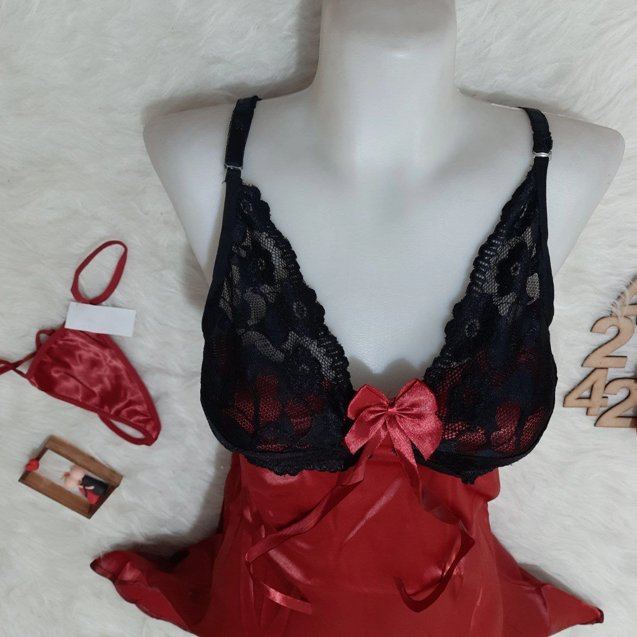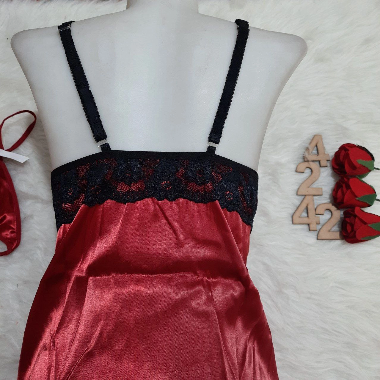 لباس خواب ساتن دامنی بالا دانتل لاو لاینجری کد L4242