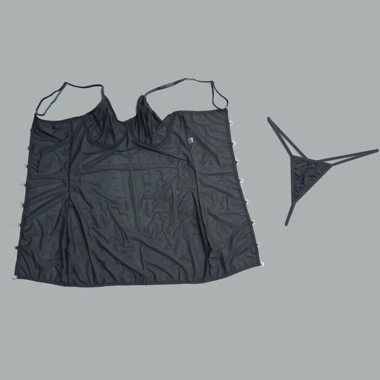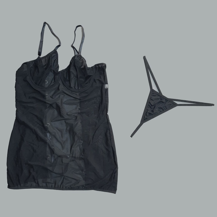 بادی توری فانتزی زنانه مشکی با بند ضربدری پشت و سوتین فنردار