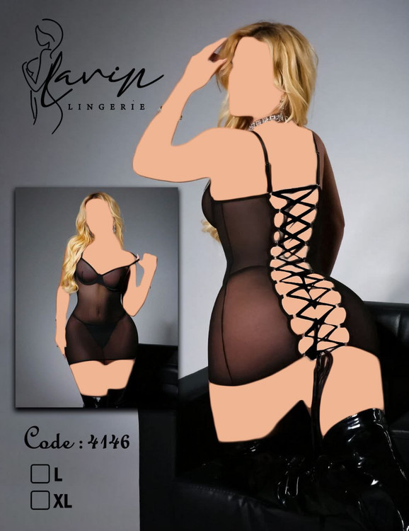 بادی توری فانتزی زنانه مشکی با بند ضربدری و سوتین فنردار Lavin کد 4146