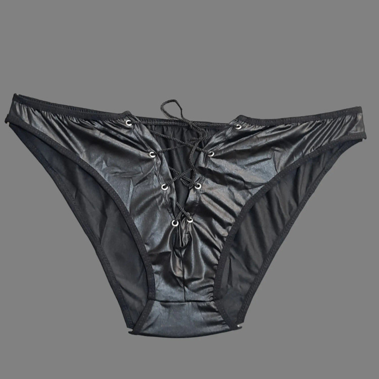 برش و پانچهای فلزی در جلو: نقطه کانونی و هیجانانگیز این شورت! یک برش عمودی در قسمت جلو که با پانچهای فلزی و بندی قابل تنظیم (مانند بند کفش) تزئین شده، نمایی بسیار جذاب و تحریکآمیز ایجاد میکند. این ویژگی به شما امکان میدهد تا میزان باز بودن و نمای جلوی شورت را به دلخواه تنظیم کنید.