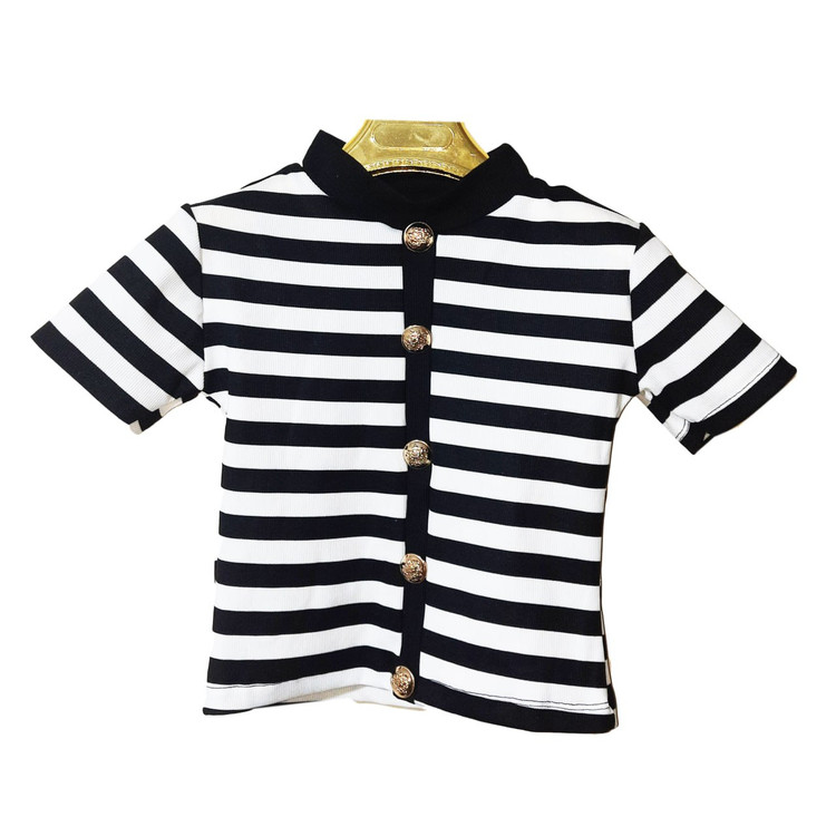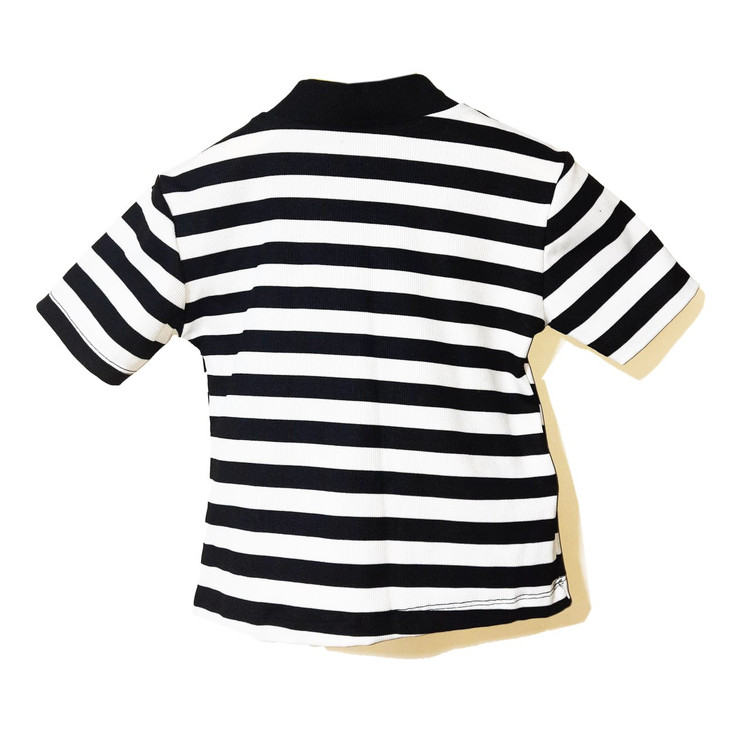 طراحی چشمگیر: طرح راه راه مشکی و سفید با خطوط درشت و متوسط، جلوهای خاص به لباس بخشیده است. این راهراهها نه خیلی عریض و نه خیلی باریک هستند و تعادلی جذاب را به نمایش میگذارند. ⚫⚪