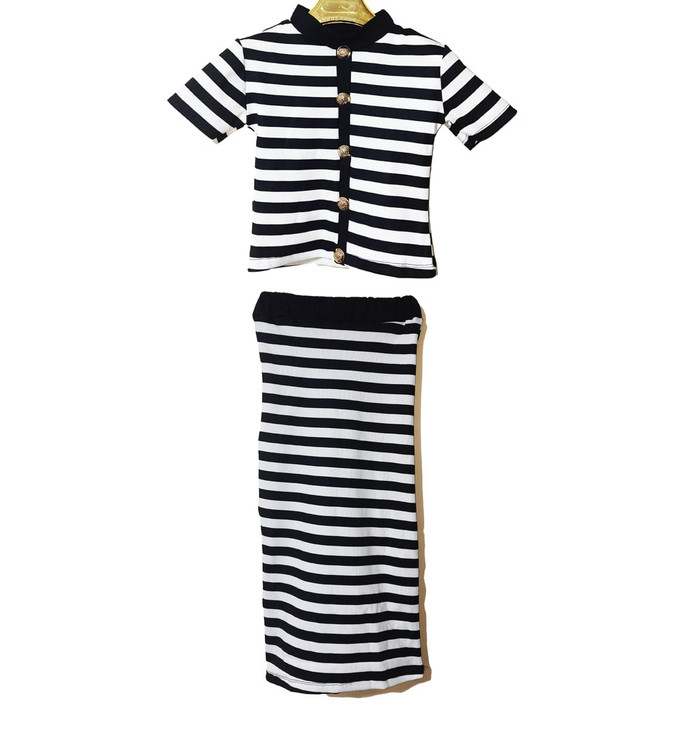 👗 ست کراپ و دامن راه راه کبریتی: شیکپوشی با پوششی کامل!