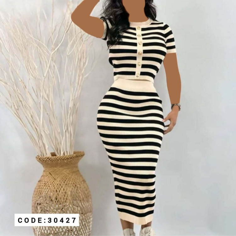 این ست با طراحی هوشمندانه خود، بر قد و فرم کلی بدن شما تاکید میکند. قد بلند دامن، پاهای شما را کشیدهتر نشان میدهد و به دلیل پوشش کامل، ظاهری آراسته و باوقار ایجاد میکند. کراپ نیز با نشان دادن بخشهایی از بالاتنه، به زیبایی شانهها و گردن جلوه میبخشد و خطوط راه راه نیز فرم بدن را به شکلی هنرمندانه برجسته میکنند. این لباس با هدف ایجاد یک پوشش کلی و جذاب، به شما این امکان را میدهد تا با اعتماد به نفس در جمع ظاهر شوید. 🌟