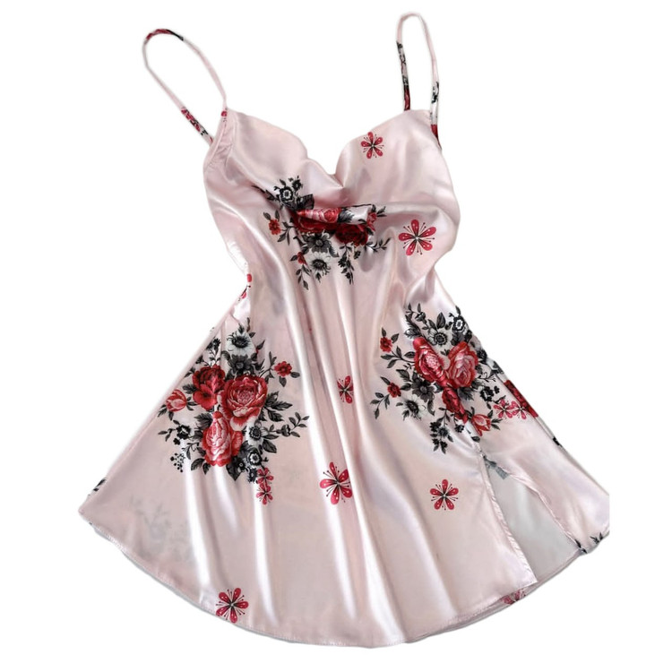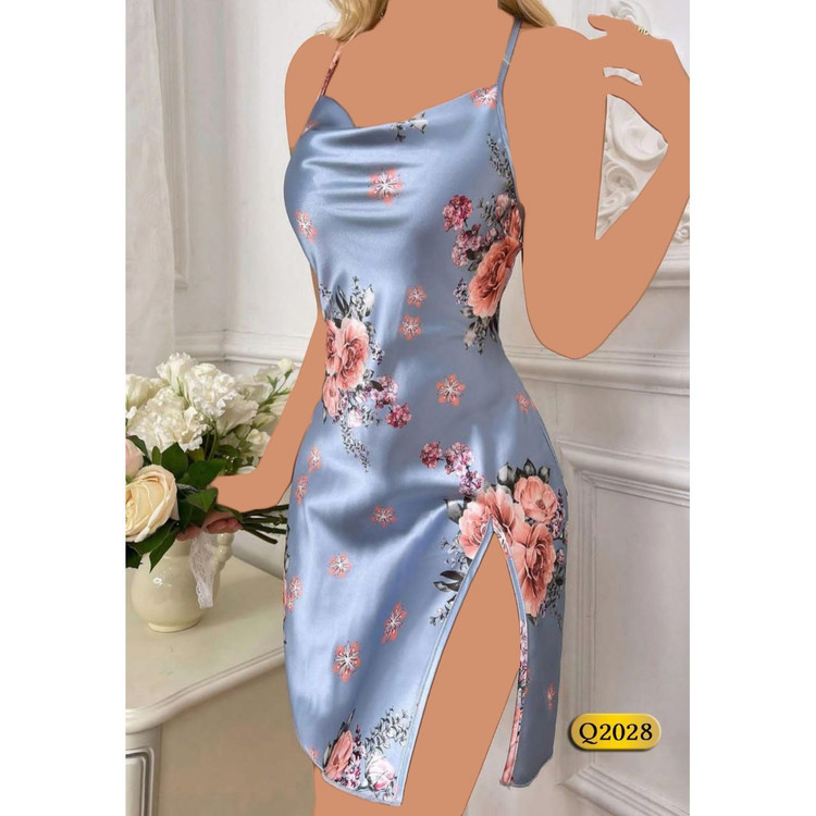 لباس خواب ساتن کنار باز یقه دراپه Queen کد Q2028