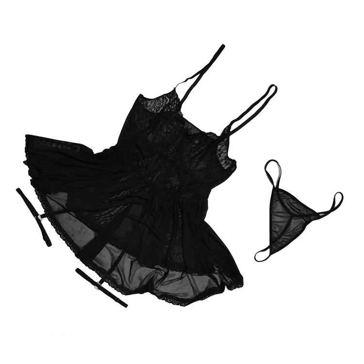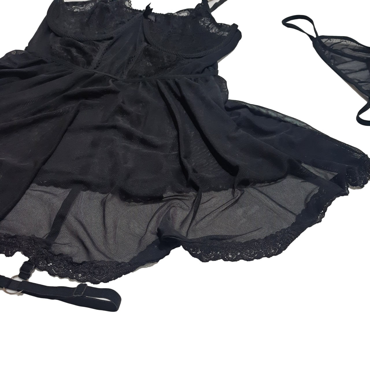 لباس خواب تور و دانتل دامنی فنردار سایز بزرگ Violetta کد 2057