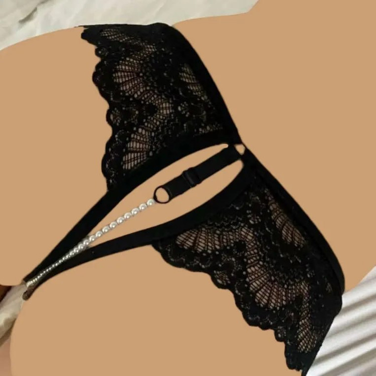 این شورت بر منحنیهای پشت بدن و خطوط بالای کمر تأکید دارد. فاق باز و دانتلهای کنار بدن، جلوهای از ظرافت و جذابیت پنهان را ارائه میدهند. طراحی مرواریدی از جلو به پشت، توجه را به نقاط حساس و جذاب معطوف میسازد.