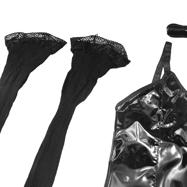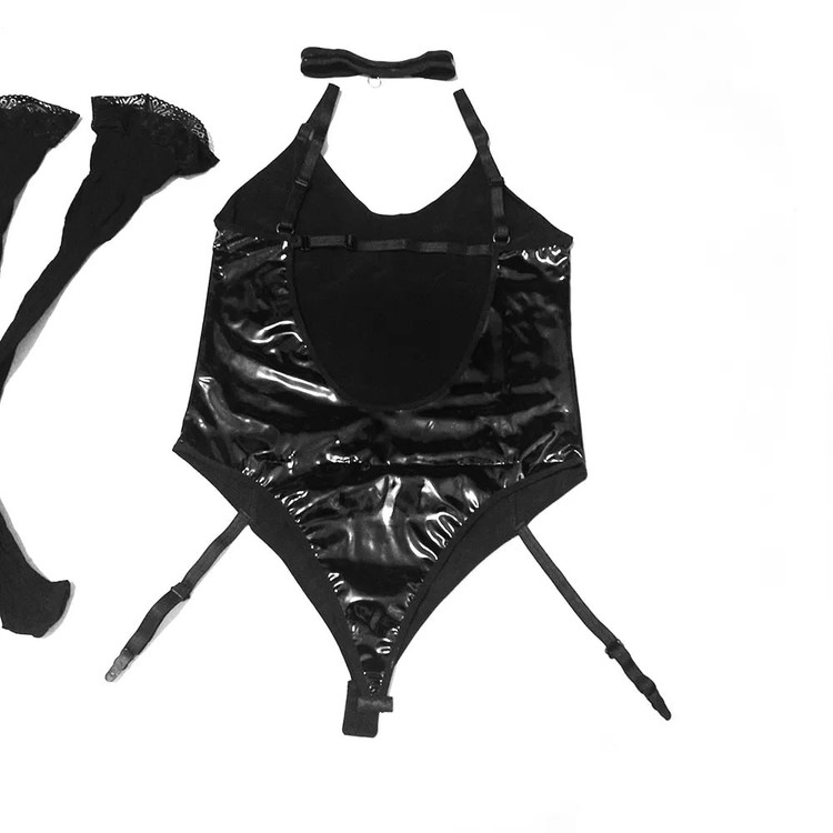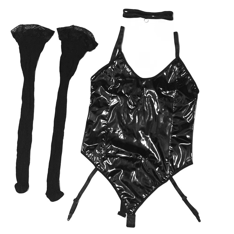 سه تکه شامل: بادی، جوراب بالا زانو دانتلدار و حلقه گردن.