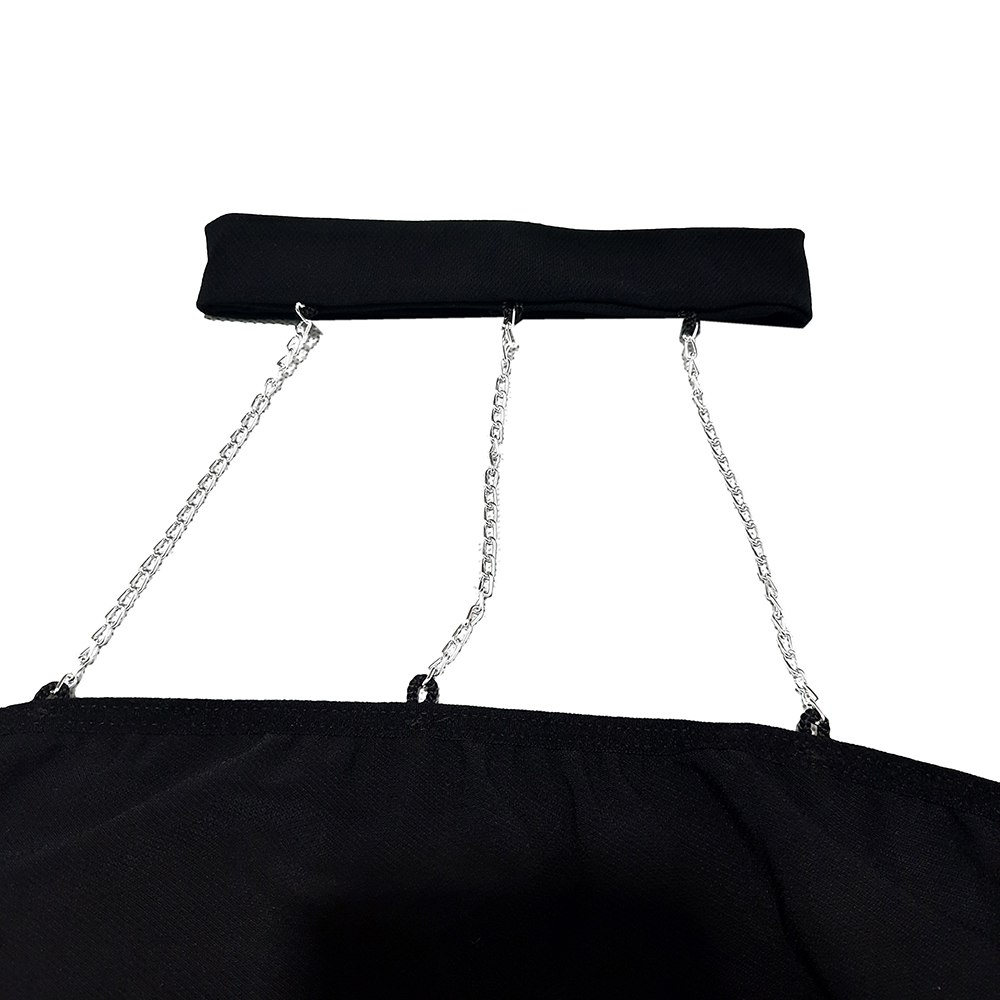 ترکیب زنجیر و رنگ مشکی که یک جلوه هندسی و خاص ایجاد میکند.