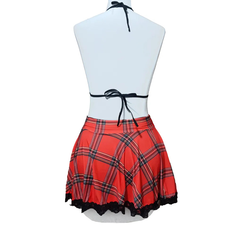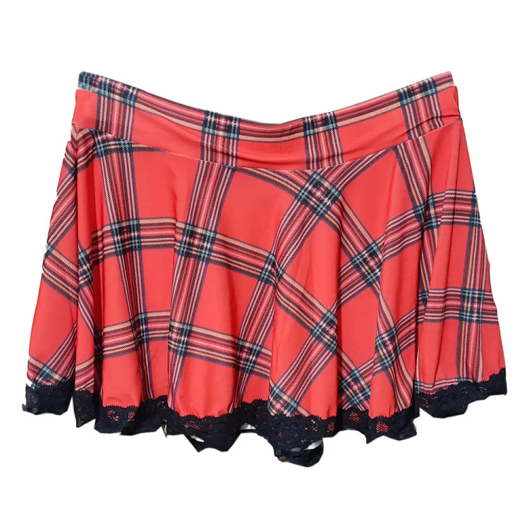 دامن دانشآموزی قرمز با خطهای مورب و دانتلدوزی پایین ❤️