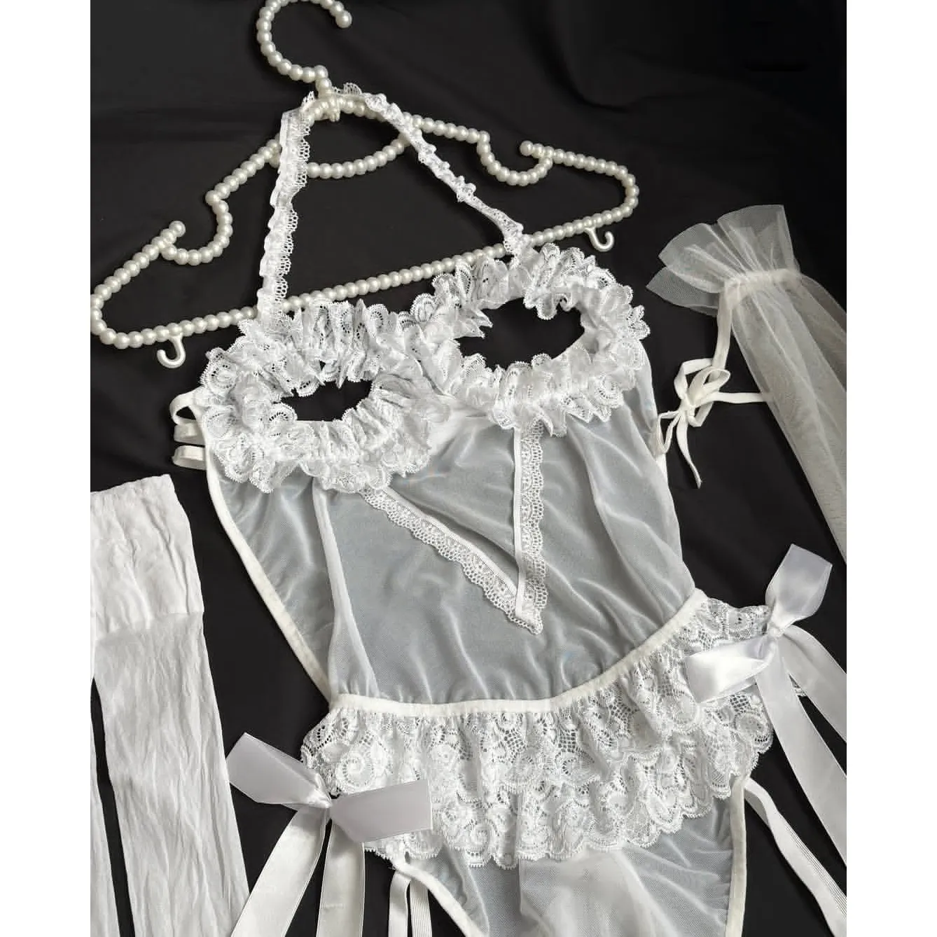 کاستوم یا لباس خواب عروس سینه باز Delwin کد 162