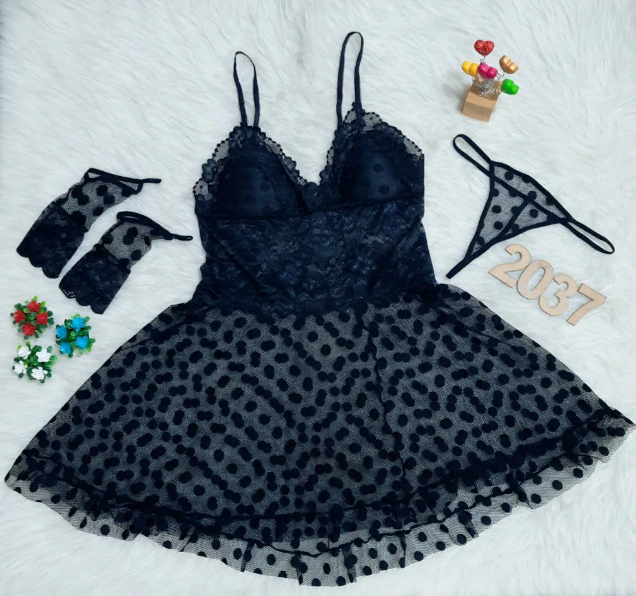 لباس خواب توری سکهای کاپدار Queen کد 2037