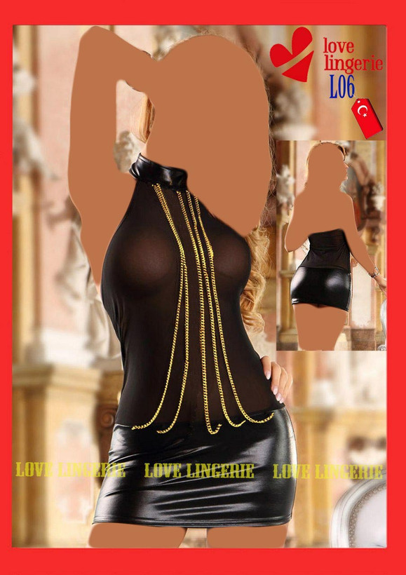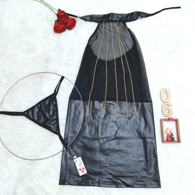 لباس چرم و تور زنجیردار لاو لاینجری کد L06