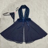 از جنس تور لطیف و دانتلی با کیفیت عالی. کسانی که مدلهای مختلف لباس خواب را دنبال میکنند این مدل را با رنگ آبی کاربنی به خاطر میآورند. این مدل جزو اولین مدلهای پر فروش لباس خواب است که ظهورش در بازار ایران به واردات لباس خواب از چین برمیگردد. اما لباس خوابهای وارداتی از چین عموما یک مشکل عمده داشتند؛ قواره لباسها ریز بود و همین موضوع فروش آنها را سختتر میکرد یا در فروشهای اینترنتی رضایت مشتری را جلب نمیکرد. لباس پیش روی محصولی از برند «لاو لاینجری» است با برش و قواره مناسب خانمهای ایرانی که ابعاد آن در ادامه ذکر میشود.
