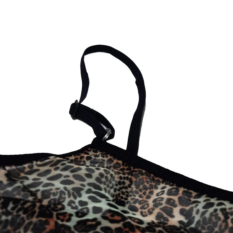 اگر به دنبال لباسی هستید که هم جسارت داشته باشد، هم ظرافت، و هم طراحی هوشمندانه، بادیسوت پلنگی Anahel کد 7220 دقیقاً همان چیزیست که باید ببینید. این لباس دو تکه شامل یک بادیسوت بدننما و شورت لامبادای مثلثیست که با ترکیب تور و طرح پلنگی، نمایی بینظیر از زیبایی بدن را به نمایش میگذارد.