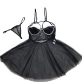 لباس خواب توری مرواریدی فنردار Anahel کد 7072