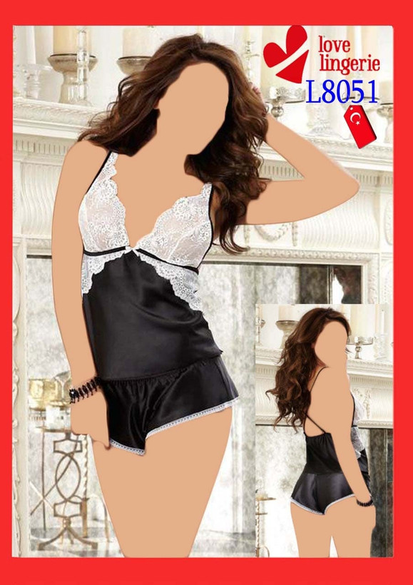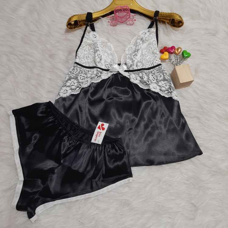 ست تاپ و شورت ساتن لاو لاینجری کدL8051