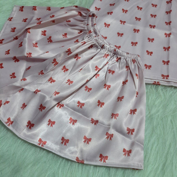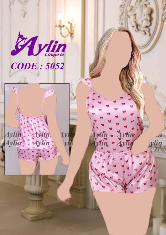 ست تاپ و شورتک ساتن طرح پاپیون Aylin کد 5052