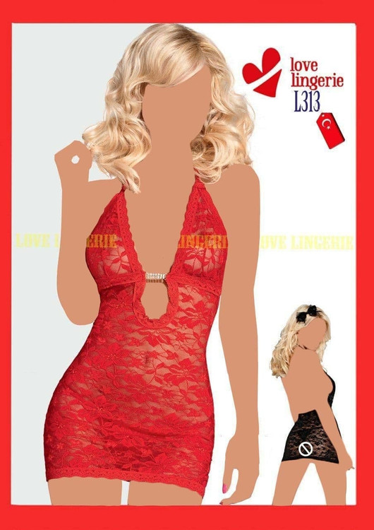 لباس خواب با تور طرحدار و پشت باز لاو لاینجری کد L313
