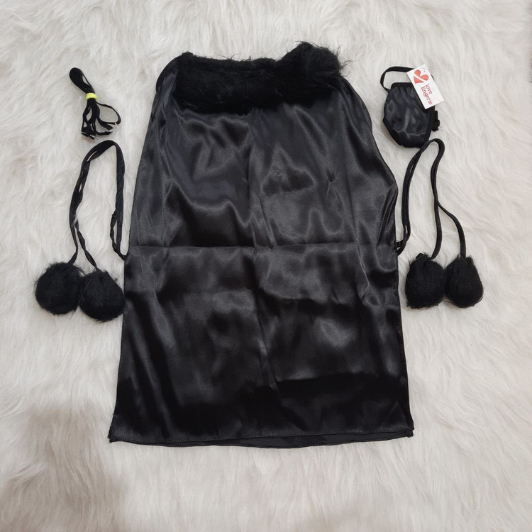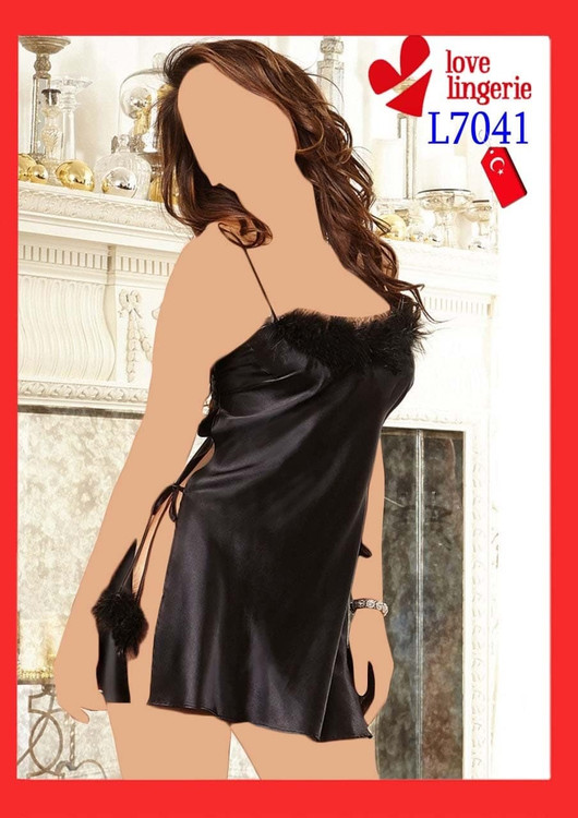 لباس خواب ساتن خزدار Love Lingerie کد L7041