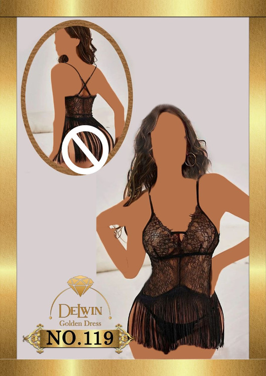لباس خواب توری فانتزی ریسهدار Delwin کد 119