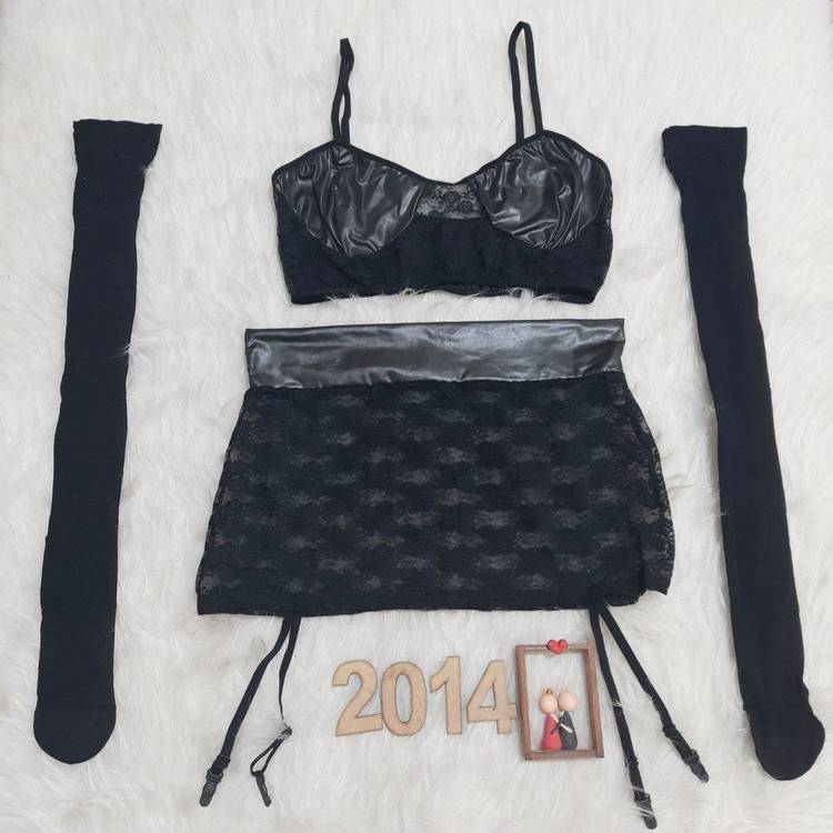 لباس خواب زنانه سایز بزرگ چرم و دانتل Valentine کد 2014