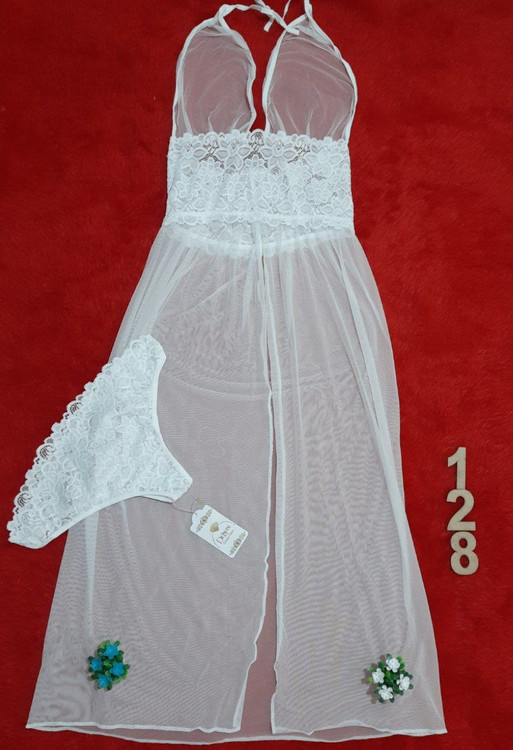 لباس خواب تور و دانتل بلند Delwin کد 128