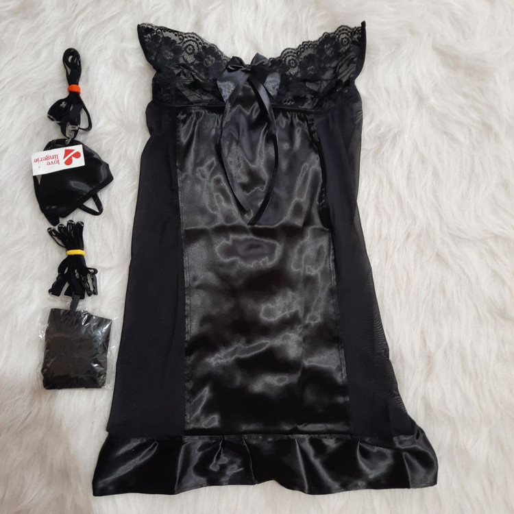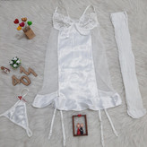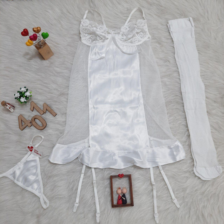 عرض پایین دامن در حالتی که پشت کار کاملا بسته است: 42 سانتیمتر(حدود 10 سانتیمتر با باز کردن پشت کار قابلیت افزایش عرض جلو دامن وجود دارد.) - رنگبندی: مشکی، سفید، قرمز(رنگ قرمز جوراب و بند جوراب ندارد.)