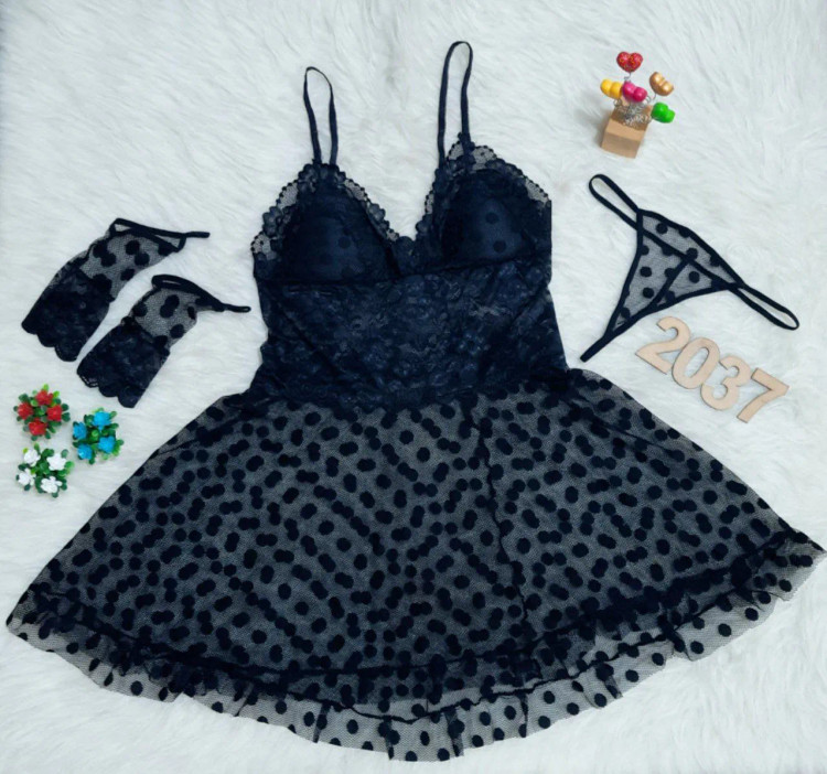 لباس خواب توری سکه‌ای کاپدار Queen کد 2037