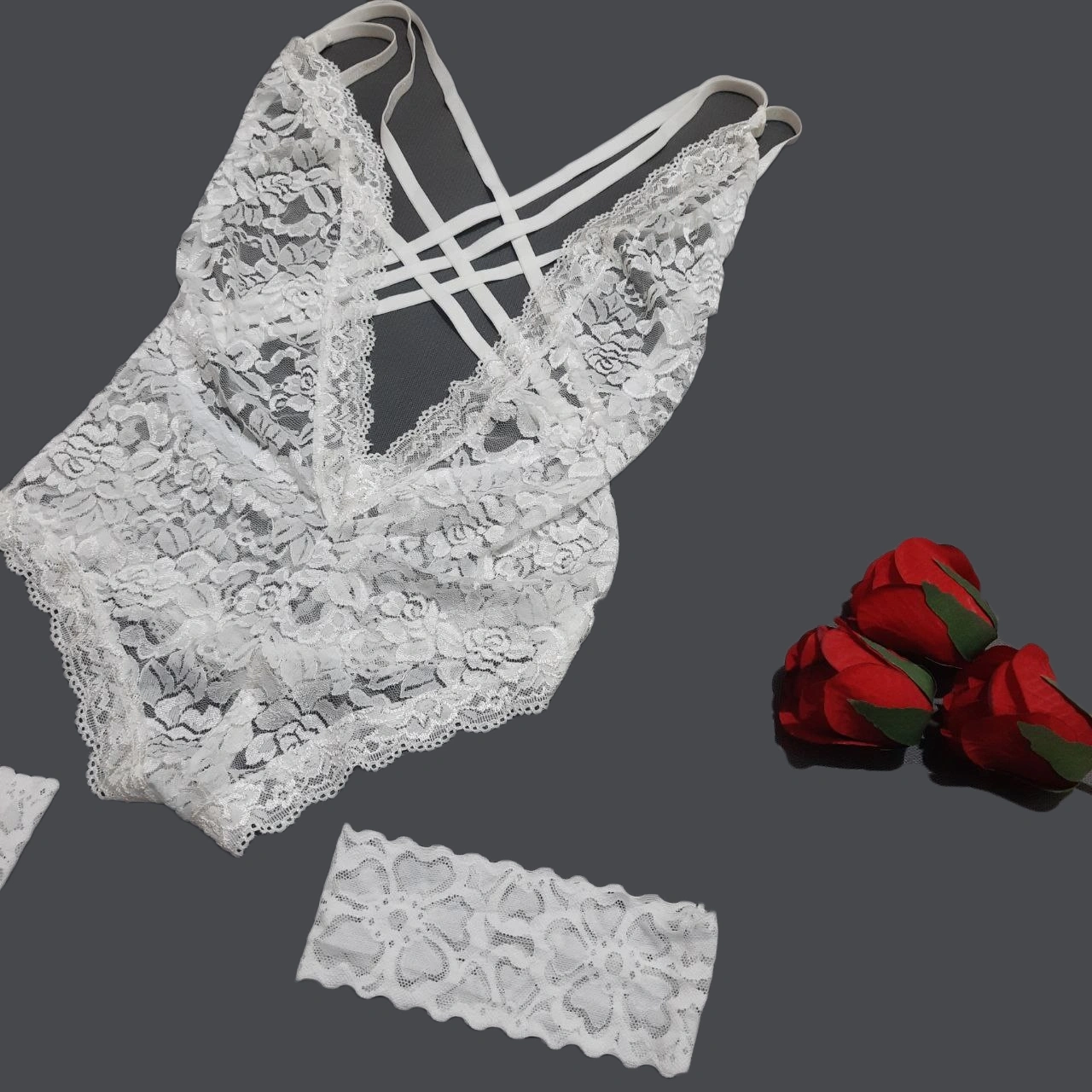 بادی فانتزی عروس، تمام دانتل و پشت ضربدری کد 302