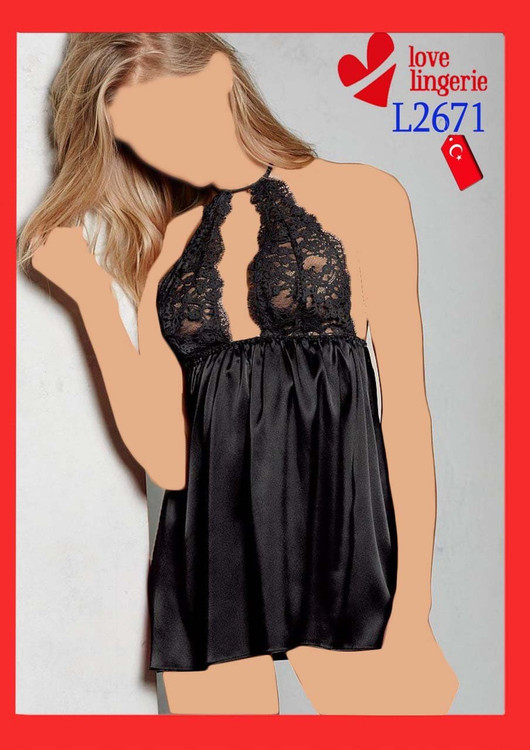 لباس خواب ساتن و دانتل لاو لاینجری کد L2671